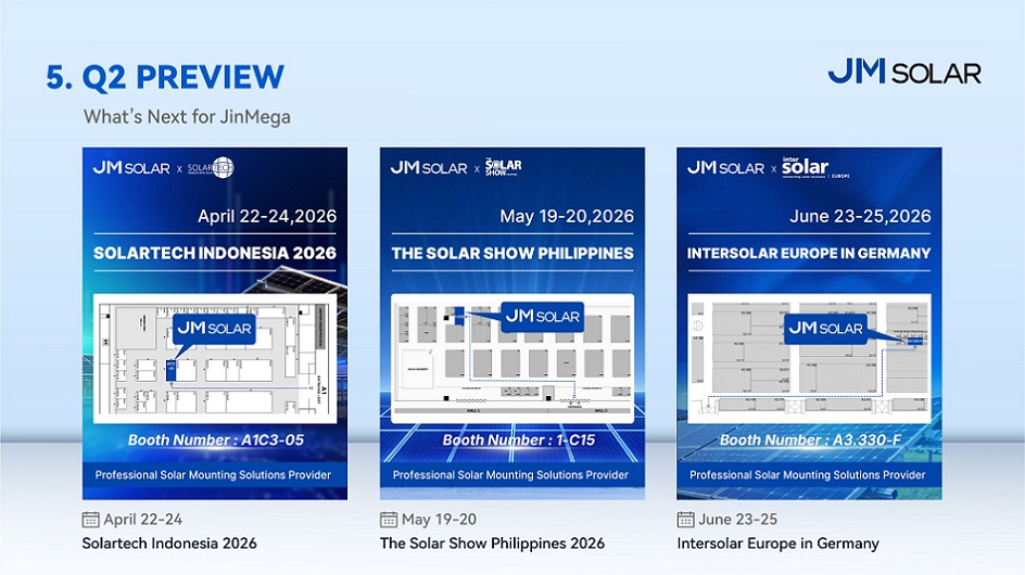 من الابتكار إلى التنفيذ، ومن التواصل العالمي إلى نمو الفريق، وضع الربع الأول أساسًا متينًا لعام 2026. ولا تزال شركة JinMega ملتزمة بتقديم حلول تركيب الطاقة الشمسية الموثوقة وخلق قيمة طويلة الأجل في جميع أنحاء العالم.